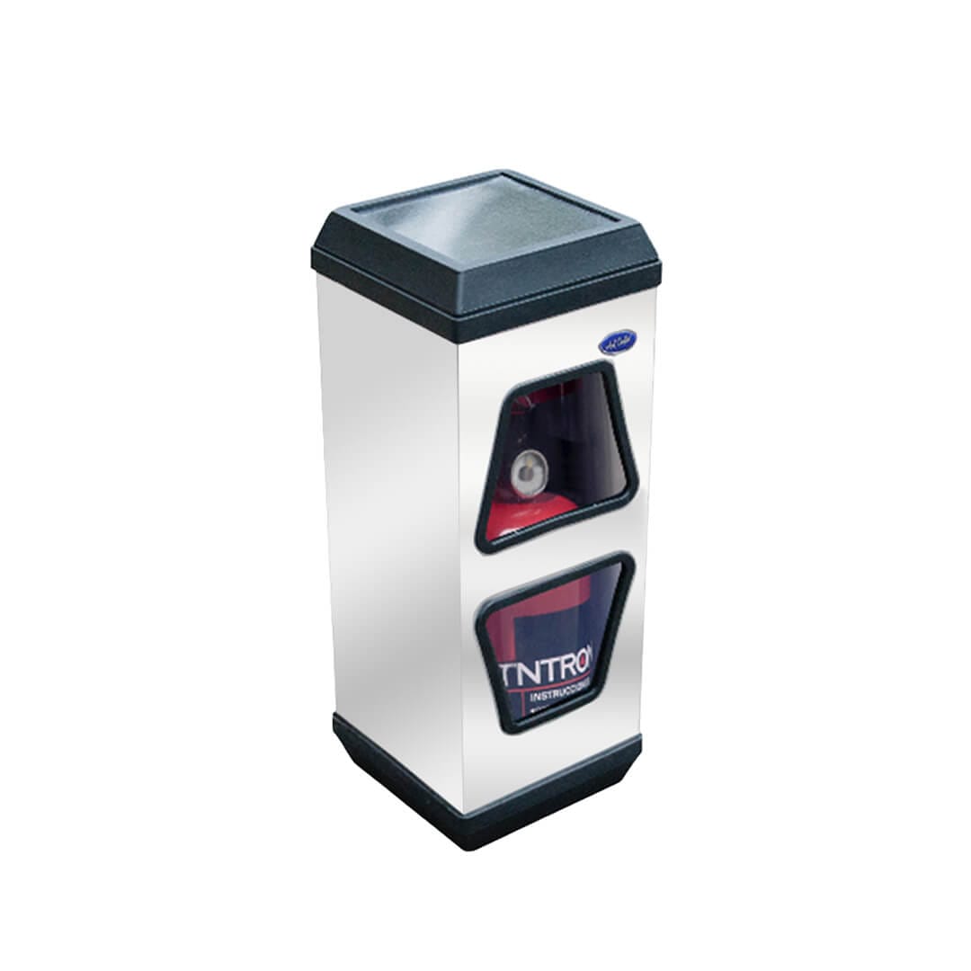 Descripción: Portaextintor de acero inoxidable con acabado espejo. Tapa doble función la cual puede cumplir la función de ser cenicero por un lado o tapa por el otro. Tapa desmontable para acceder fácil y rápidamente al interior. Fondo de Plástico de alta resistencia, para un mejor cuidado de la pieza y del piso ya que evita los rayones y también las manchas en el piso en caso de estar húmedo. Con doble ventana al frente del portaextintor. Cuenta con calcomanía indicativa. Producto reciclable gracias a sus materiales y sistemas de fabricación. Producto accesible a personas discapacitadas. Peso máximo: 9 Kg. Medidas: 26x26x70. Imagen ilustrativa, el producto final puede variar.